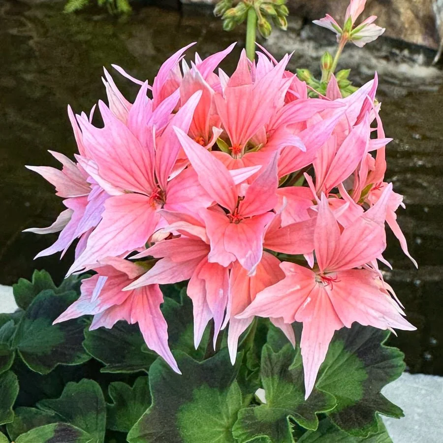 På bilden till höger visas 2025 års pelargon, stjärnpelargonen “Summer Twist Rose”.